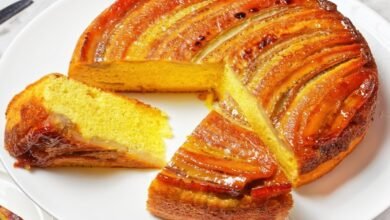 Bolo Dourado de Banana Com Calda De Caramelo. uma sobremesa deliciosa e fácil de fazer. Ideal para qualquer ocasião! Você…